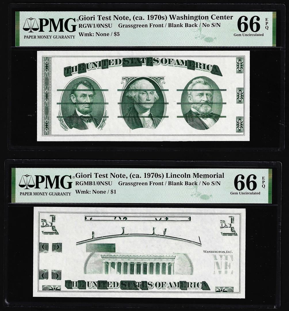 One Set of Giori Test Note Washington & Lincoln Memorial PMG Gem Uncirculated 66EPQ. PMG Certified.