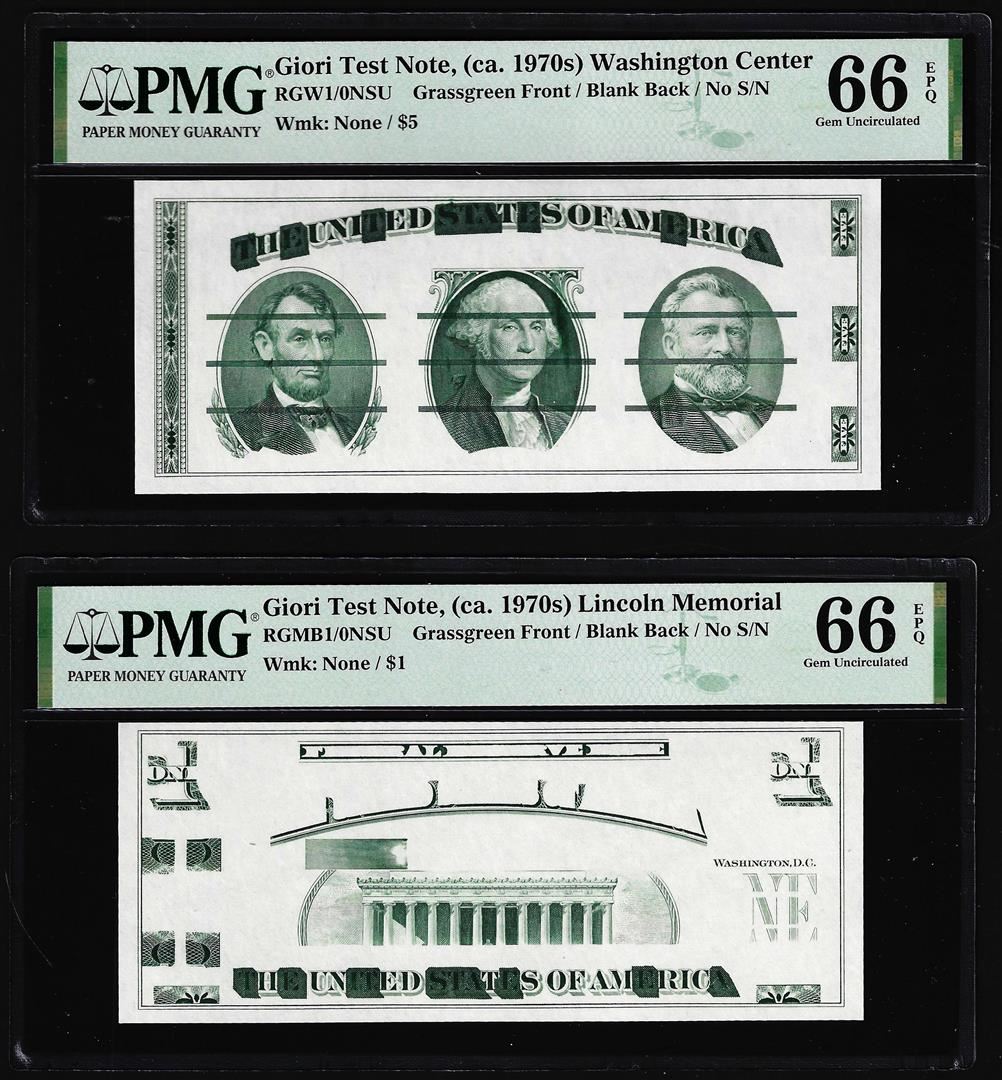 One Set of Giori Test Note Washington & Lincoln Memorial PMG Gem Uncirculated 66EPQ. PMG Certified.