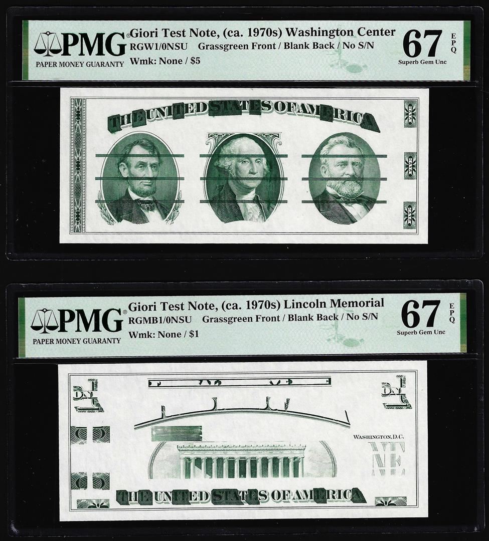 Set of Giori Test Note Washington & Lincoln Memorial PMG Superb Gem Unc 67EPQ