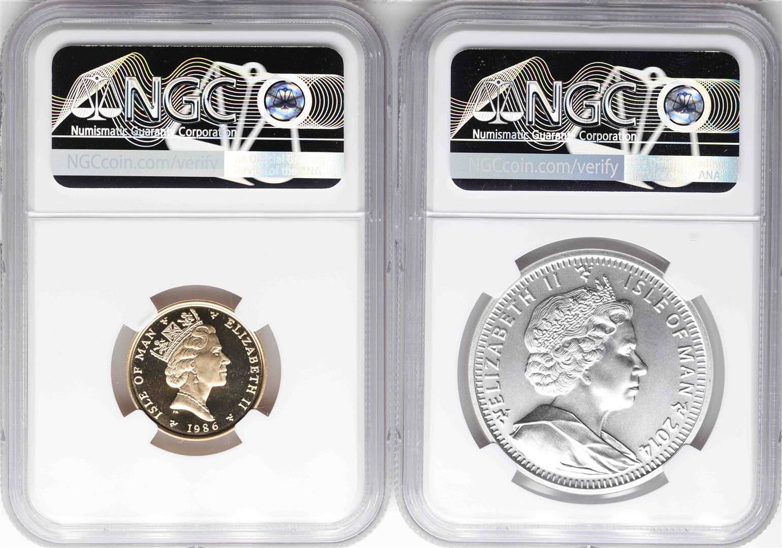 One Set of Isle of Man 2014 Silver Angel NGC MS68 & 1986 1/4 Angel Gold Coins PF68 Cameo. NGC Certified.
