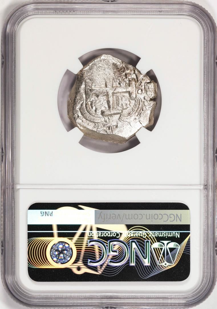 One Shipwreck 1750P E Bolivia 4 Reales Silver Coin NGC AU Excavation Recovery. NGC Certified.