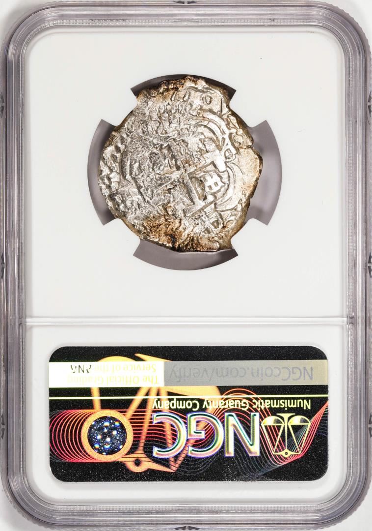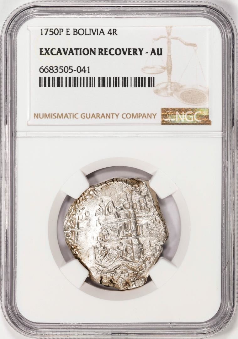 Shipwreck 1750P E Bolivia 4 Reales Silver Coin NGC AU Excavation Recovery