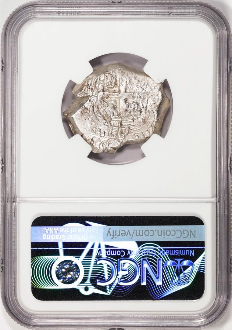 One Shipwreck 1750P q Bolivia 4 Reales Silver Coin NGC AU Excavation Recovery. NGC Certified.