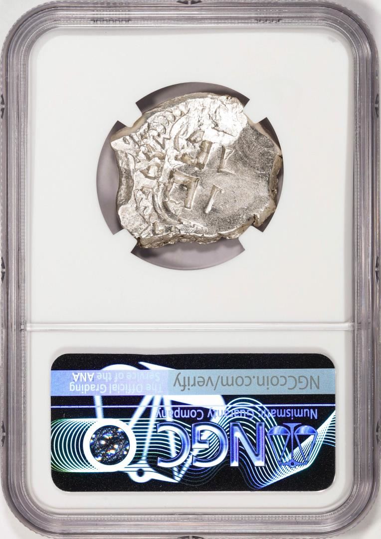 One Shipwreck 1751P E Bolivia 4 Reales Silver Coin NGC AU Excavation Recovery. NGC Certified.