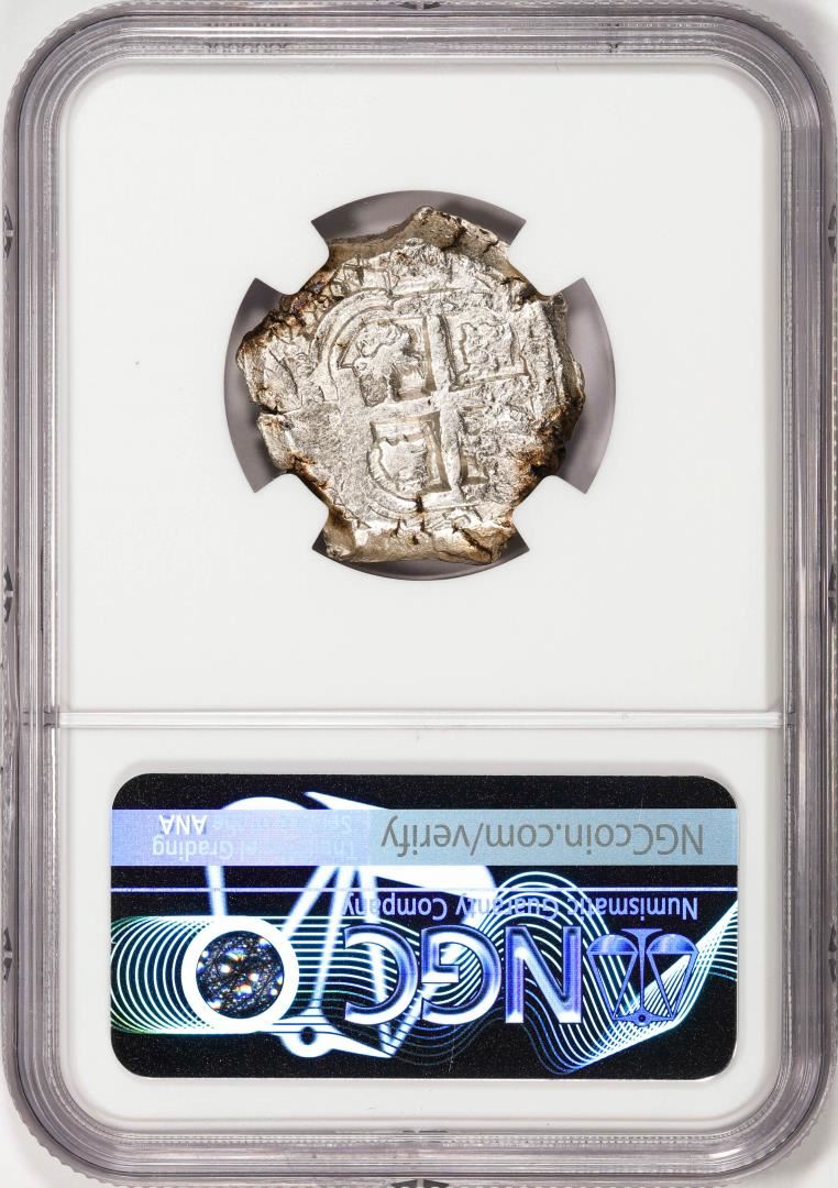 One Shipwreck 1751P E Bolivia 4 Reales Silver Coin NGC AU Excavation Recovery. NGC Certified.