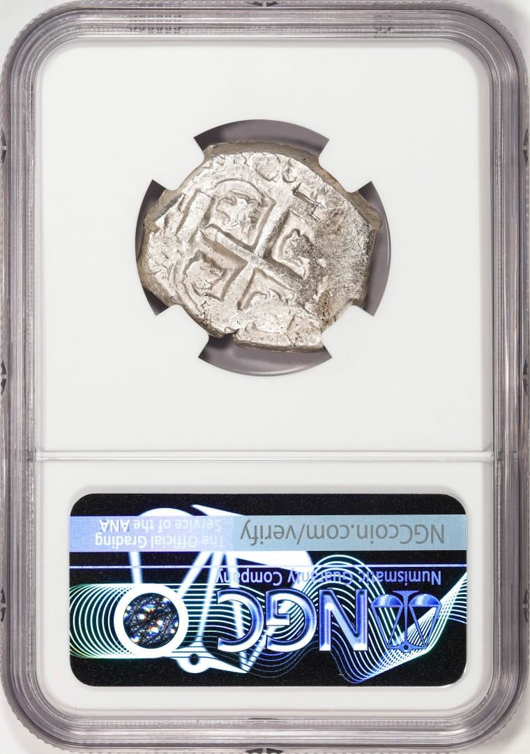 One Shipwreck 1752P q Bolivia 4 Reales Silver Coin NGC AU Excavation Recovery. NGC Certified.