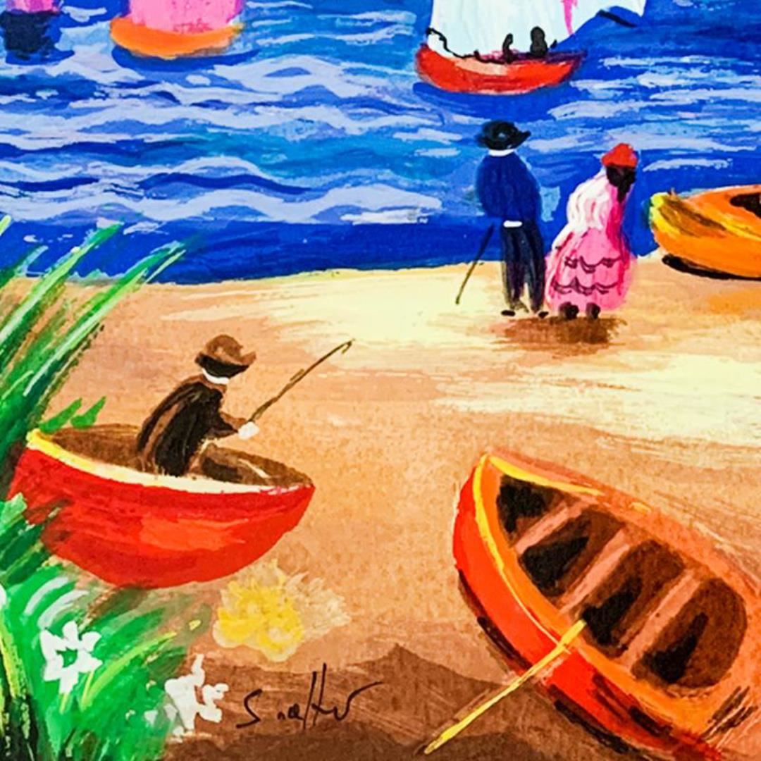 "Near the Lake" is a limited edition serigraph on paper by Shlomo Alter (1936-2021). It is numbered and hand signed and includes a letter of authenticity. Measures approximately 14" x 12.5" (image).