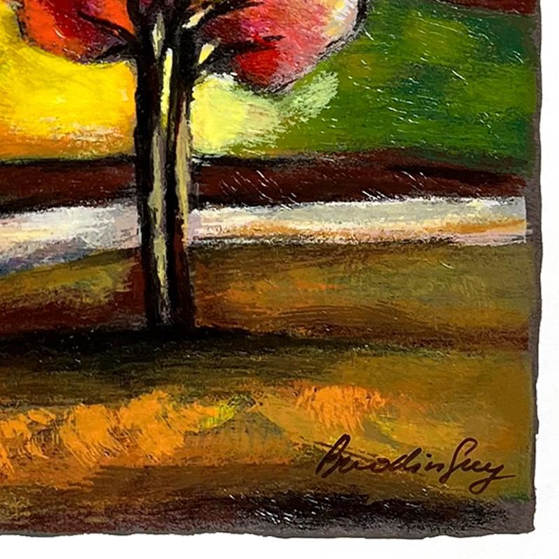 This is a limited edition on paper by Slava Brodinsky. The piece comes hand signed by the artist, numbered, and with a letter of authenticity. Measures approximately 12" x 12".
