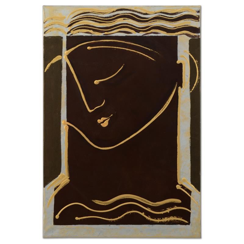 "Deni" is an original mixed media acrylic painting on stretched canvas by Gaylord Soli, hand signed and titled inverso by the artist! Includes Certificate of Authenticity! Measures approx. 24" x 36" (image).