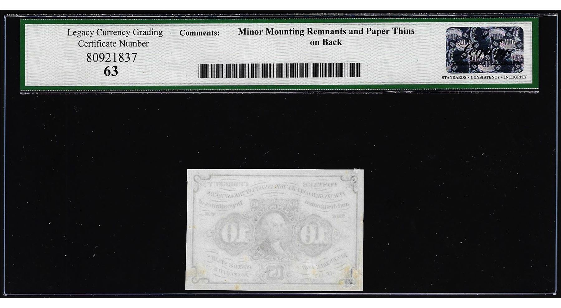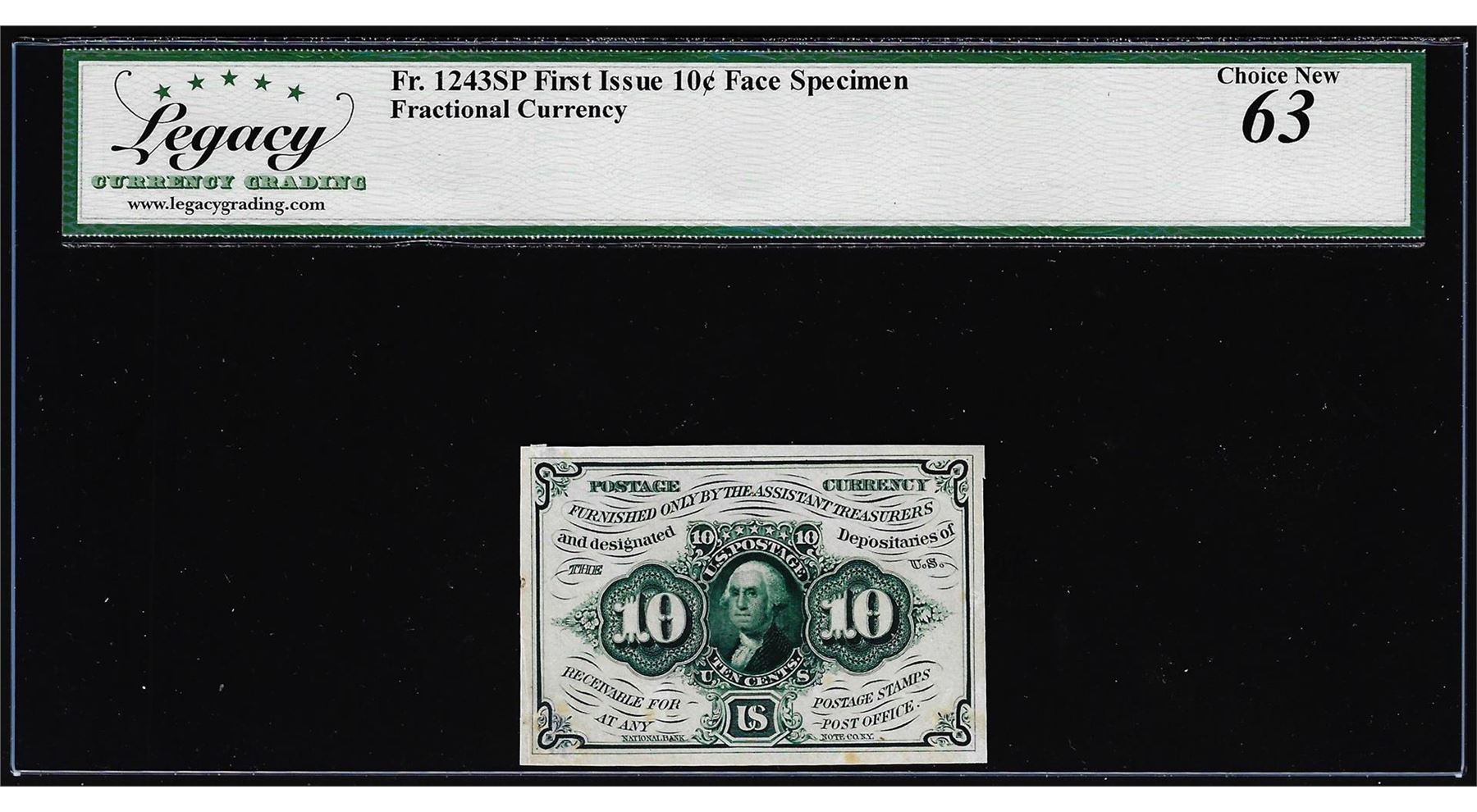 One Specimen First Issue Ten Cents Fractional Note Fr.1243SP Legacy Choice New 63. Legacy Graded.