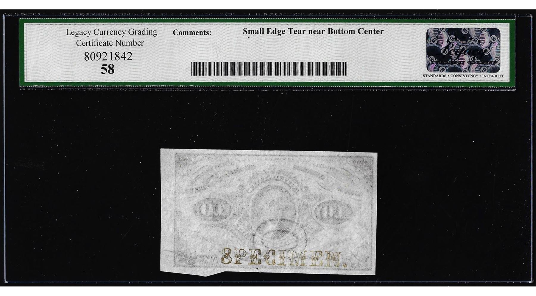 One Specimen Third Issue Ten Cents Fractional Note Fr.1251SP Legacy Choice About New 58. Legacy Graded.