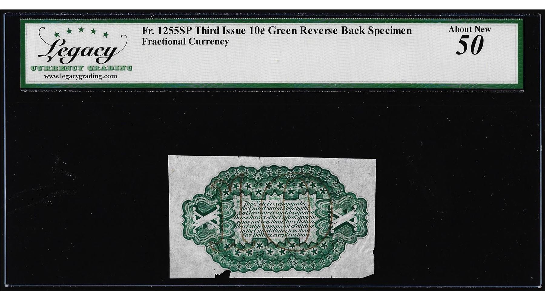 One Specimen Third Issue Ten Cents Fractional Note Fr.1255SP Legacy About New 50. Legacy Graded.