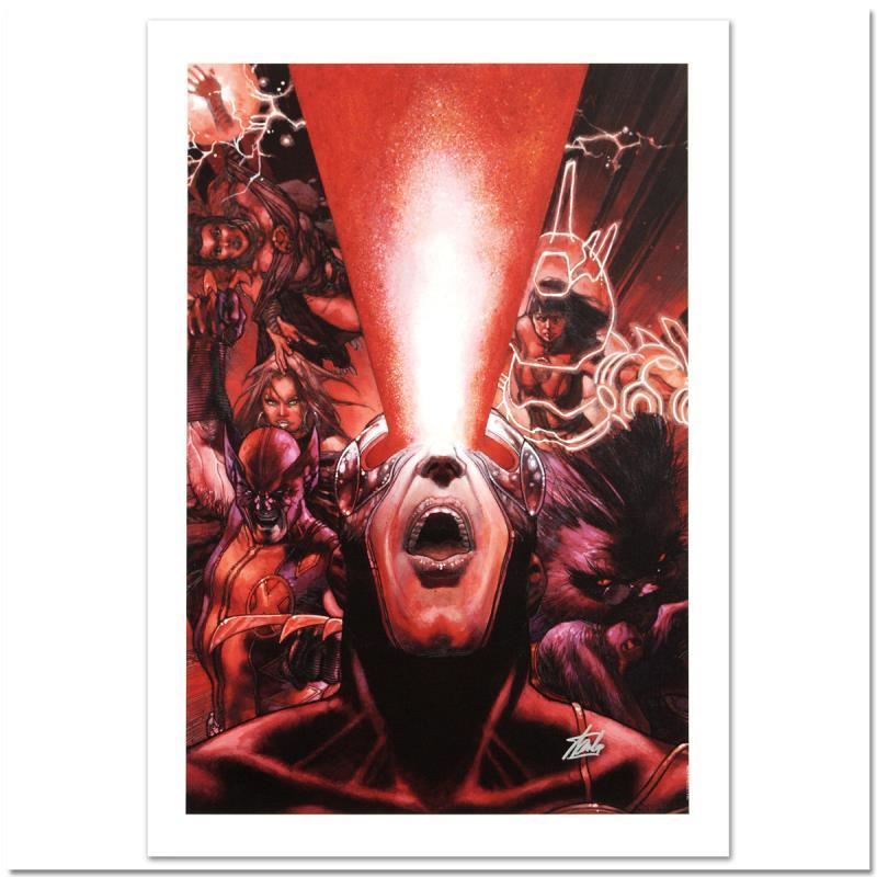 "Astonishing X-Men #30" is a limited edition giclee on canvas with art by Simone Bianchi. Officially licensed by Marvel, this piece is numbered 3/99 and hand signed by creative legend Stan Lee (1922-2018). The piece comes with a certificate of authenticity. Measures approximately 27" x 18".