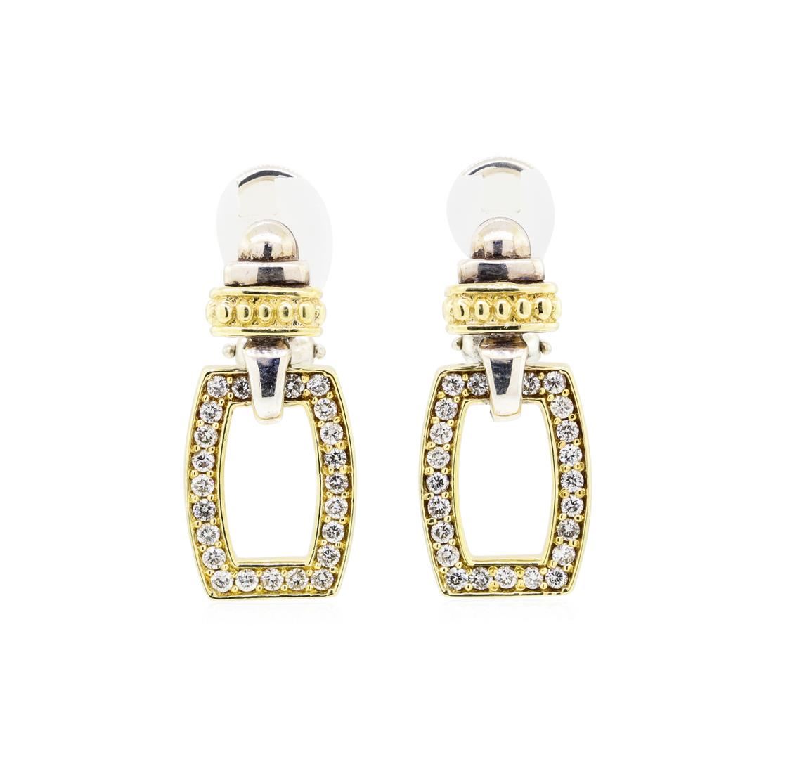 Sterling Silver and 18KT Yellow Gold 0.60 ctw Diamond Earrings