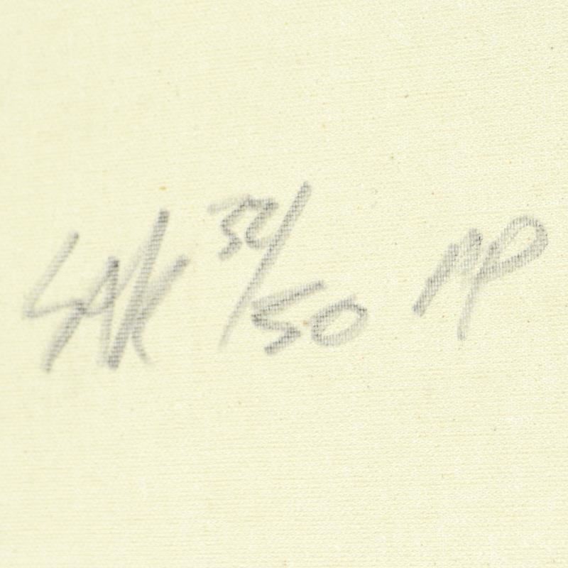 "Actress" is a hand pulled limited edition silkscreen on canvas by Andy Warhol protege Steve Kaufman (1960-2010). This piece is TP numbered 32/50 and hand signed inverso. Includes letter of authenticity. As is common with Kaufman's works, this piece may have perceived minor flaws, but is in overall good condition. Measures approx. 46" x 24" (image). Please note: there are minor creases in the canvas that will likely be concealed when the piece is stretched.