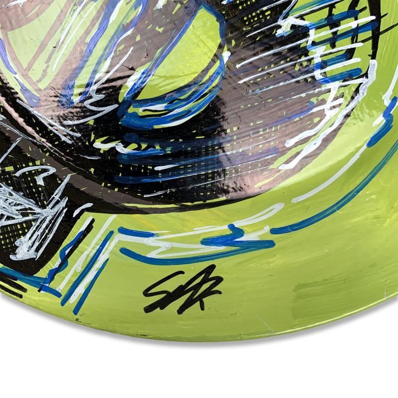 "Dollar Sign" is a hand painted plate by Steve Kaufman (1960-2010). This piece is hand signed by the artist and includes a letter of authenticity. As is common with Kaufman's works, this piece may have perceived minor flaws, but is in overall good condition. Measures approximately 8" (diameter).