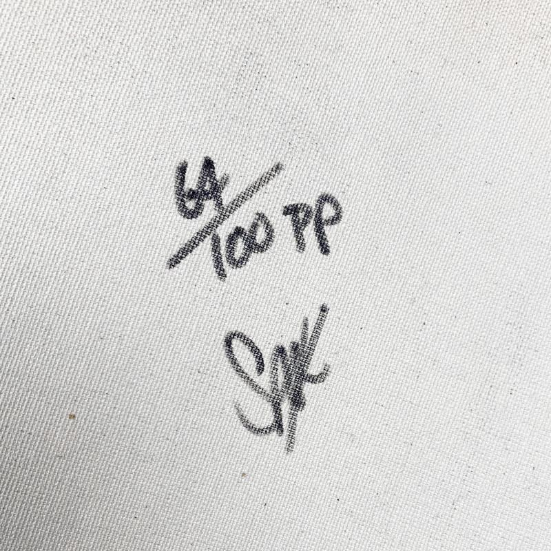 "$100 To Hell and Back" is a limited edition hand pulled silkscreen unique mixed media on canvas by Andy Warhol protege Steve Kaufman (1960-2010). This piece is numbered and hand signed inverso and includes a letter of authenticity. As is common with Kaufman's works, this piece may have perceived minor flaws, but is in overall good condition. Measures approximately 15" x 47" before cropping.