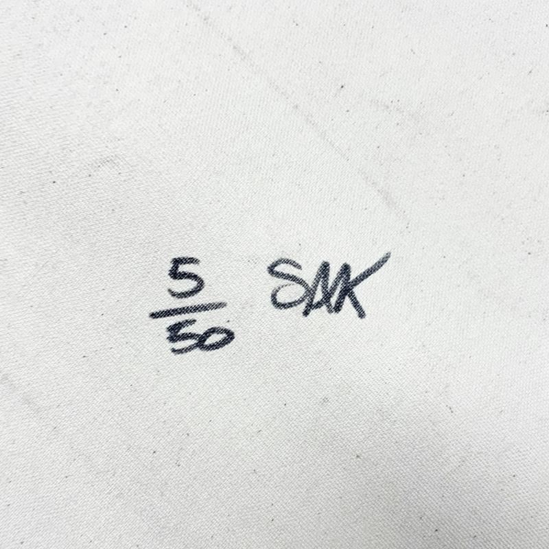 "Kaufman $100" is a limited edition hand pulled silkscreen unique mixed media on canvas by Andy Warhol protege Steve Kaufman (1960-2010). This piece is numbered and hand signed inverso and includes a letter of authenticity. As is common with Kaufman's works, this piece may have perceived minor flaws, but is in overall good condition. Measures approximately 18" x 35" before cropping.