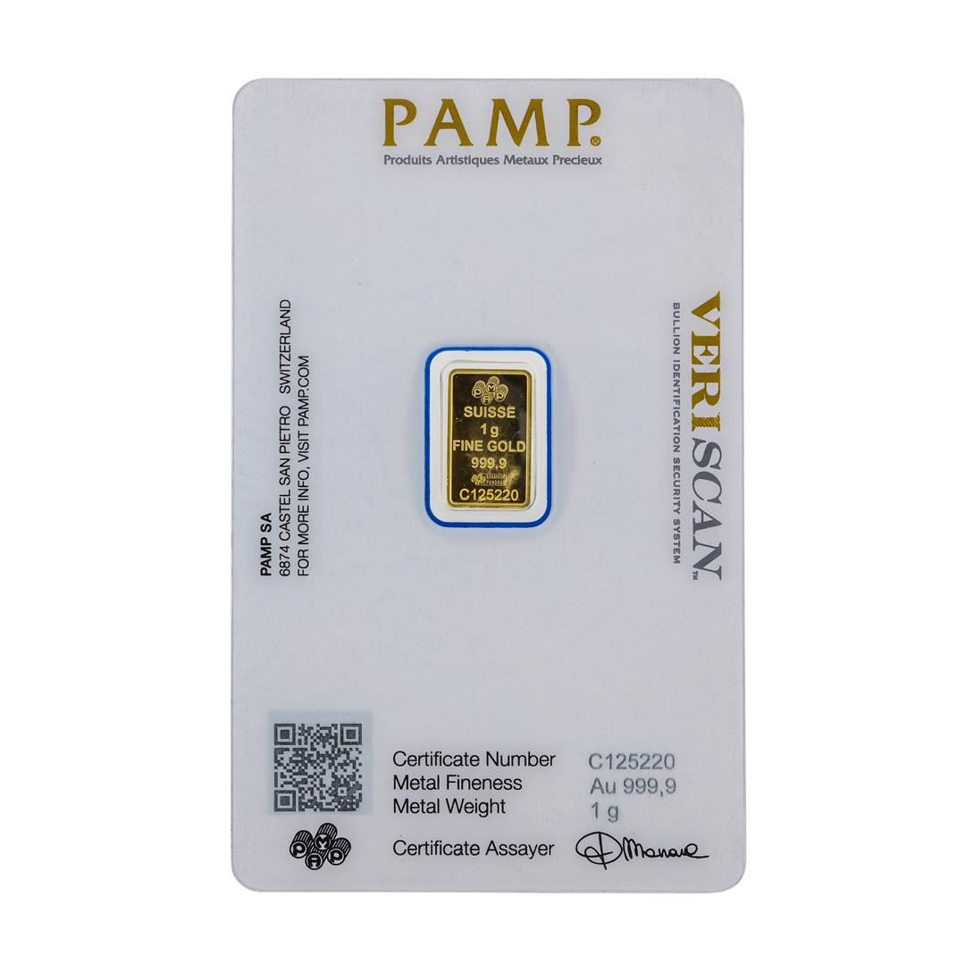 One Suisse 1 Gram Fine Gold Pamp Gold Bar.