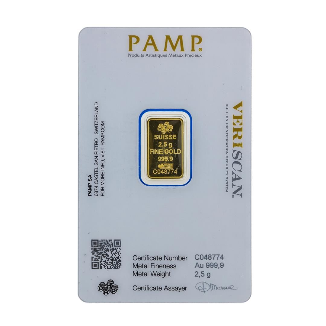 One Suisse 2.5 Gram Fine Gold Pamp Gold Bar.