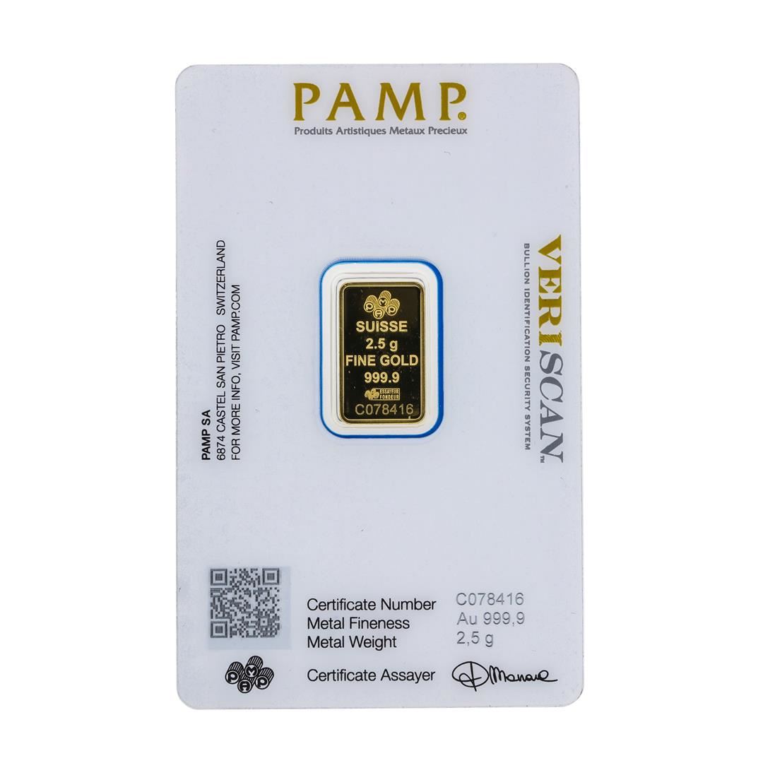 One Suisse 2.5g Fine Gold Swiss Pamp Gold Bar.
