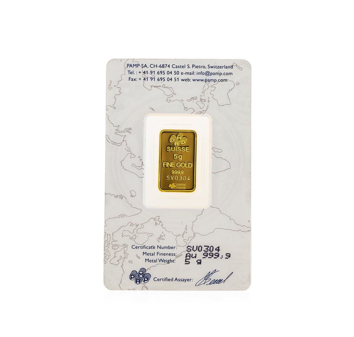 One Suisse 5g Fine Gold Swiss Pamp Gold Bar.