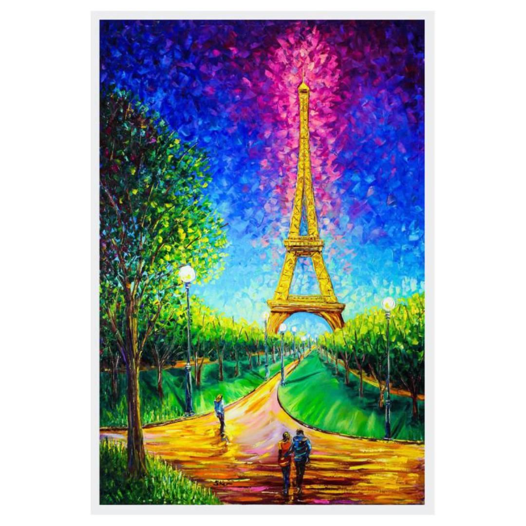"Eiffel Tower at Night" is an original painting oil on canvas by Svyatoslav Shyrochuk. The piece is hand signed by the artist and comes with a letter of authenticity. Measures approximately 36" x 24". This item requires special handling and may have a longer than usual turnaround.