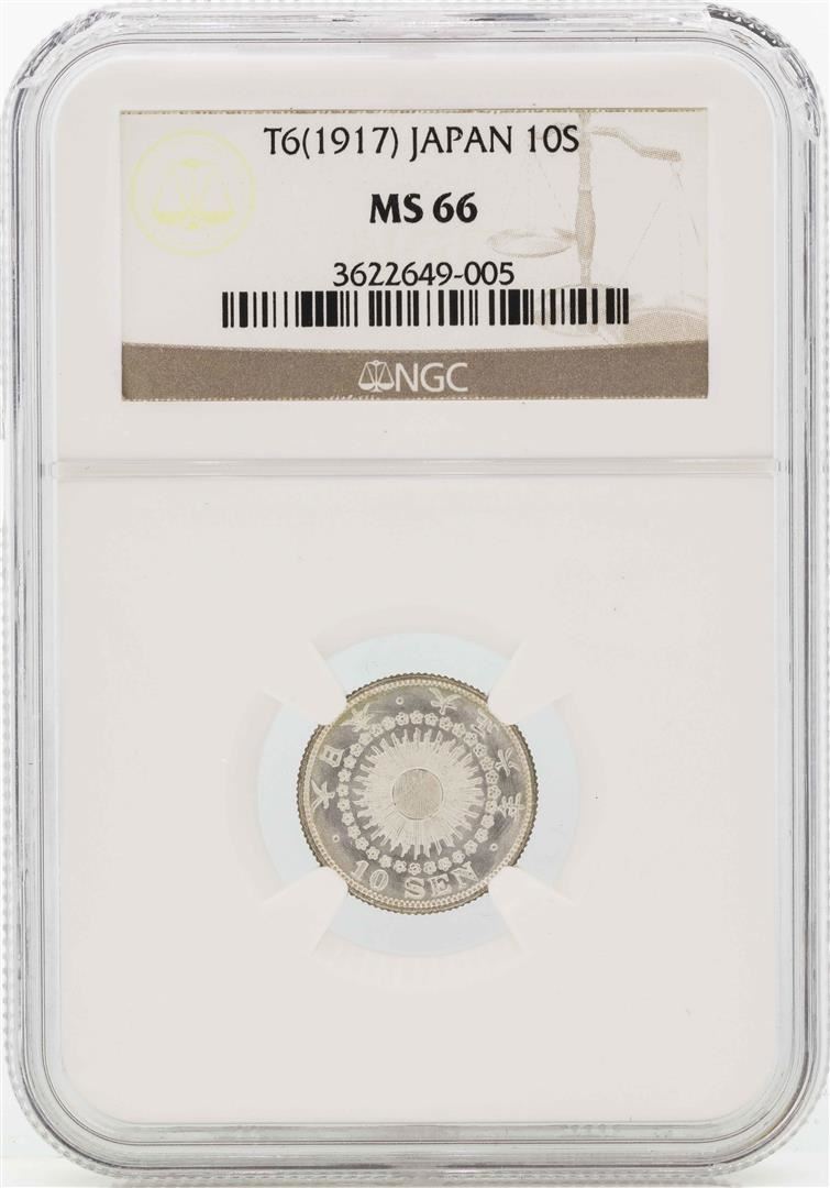 One T6(1917) Japan 10 Sen Silver Coin NGC MS66. NGC Certified.