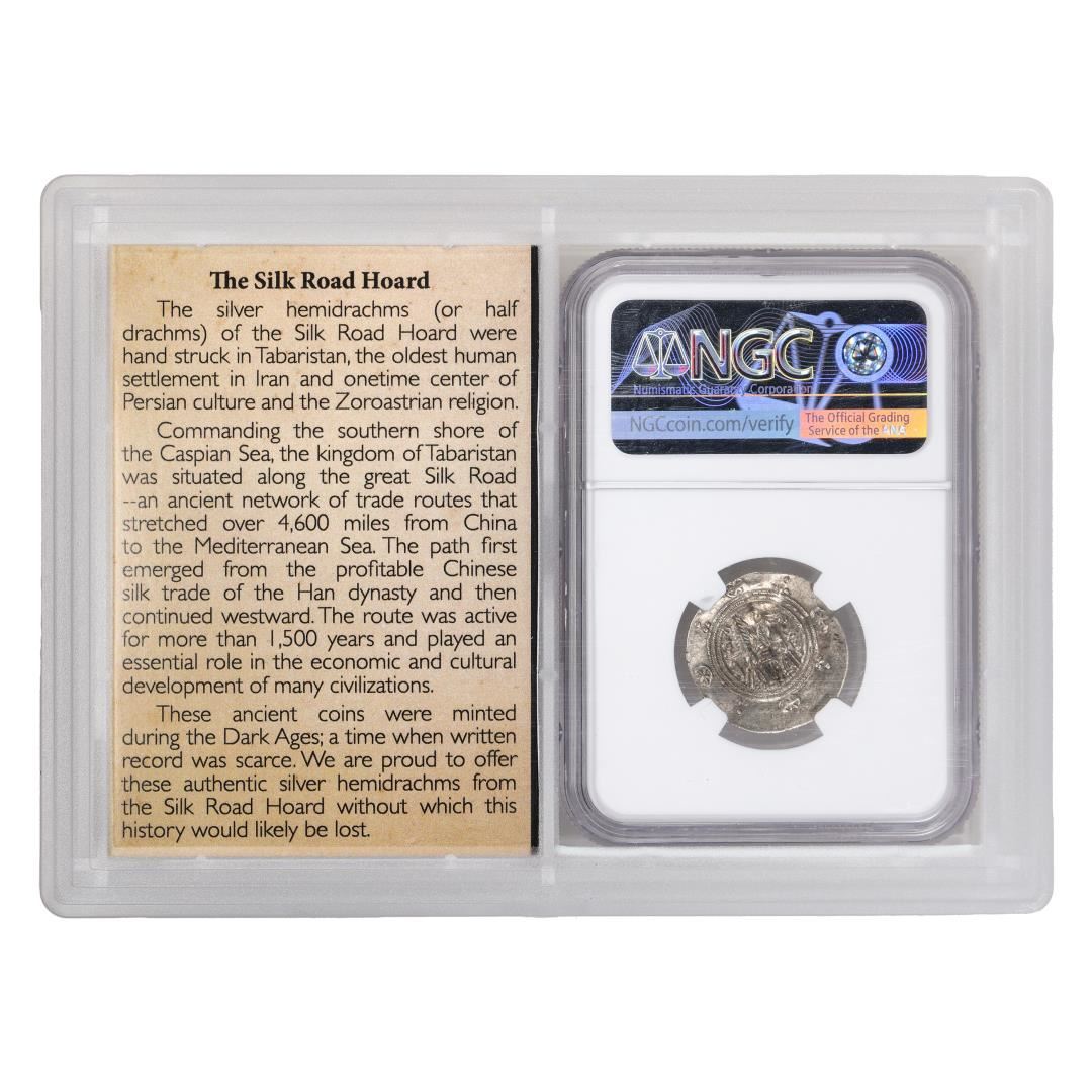 Tabaristan 780-793 c.AD Ar Hemidrachm Silk Road Hoard Ancient Coin NGC XF Story Box