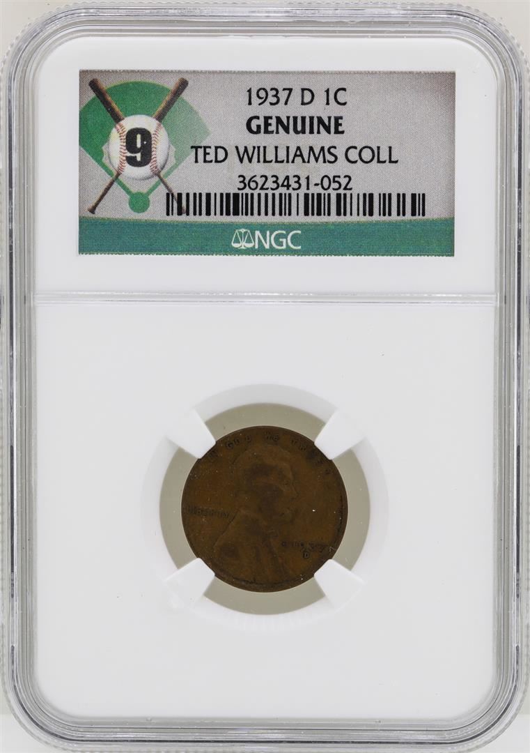 One Ted Willaims Collection 1937-D Lincoln Wheat Cent Coin NGC Genuine. NGC Certified.