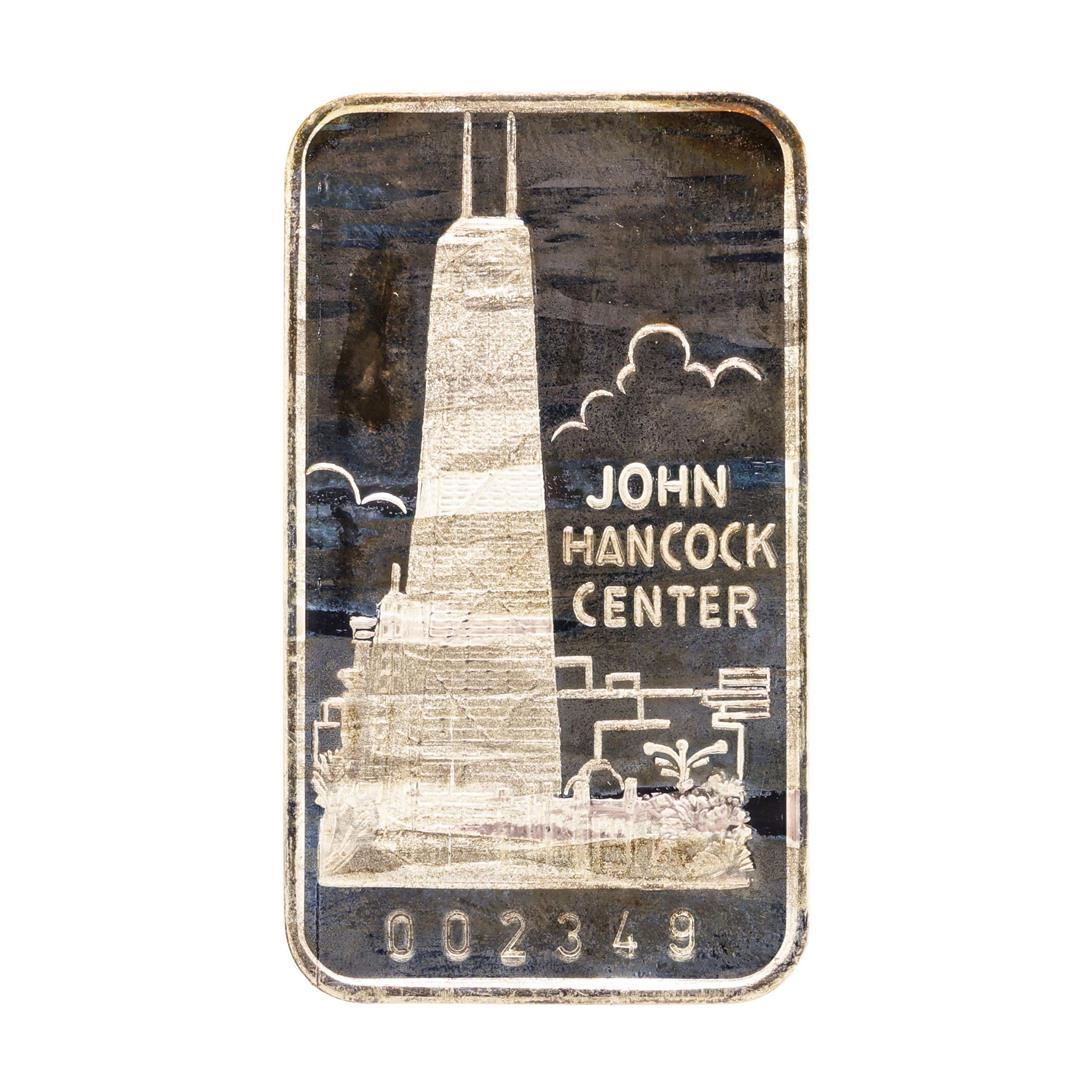 One The First National Bank of Chicago John Hancock Center 1 oz .999 Fine Silver Art Bar.