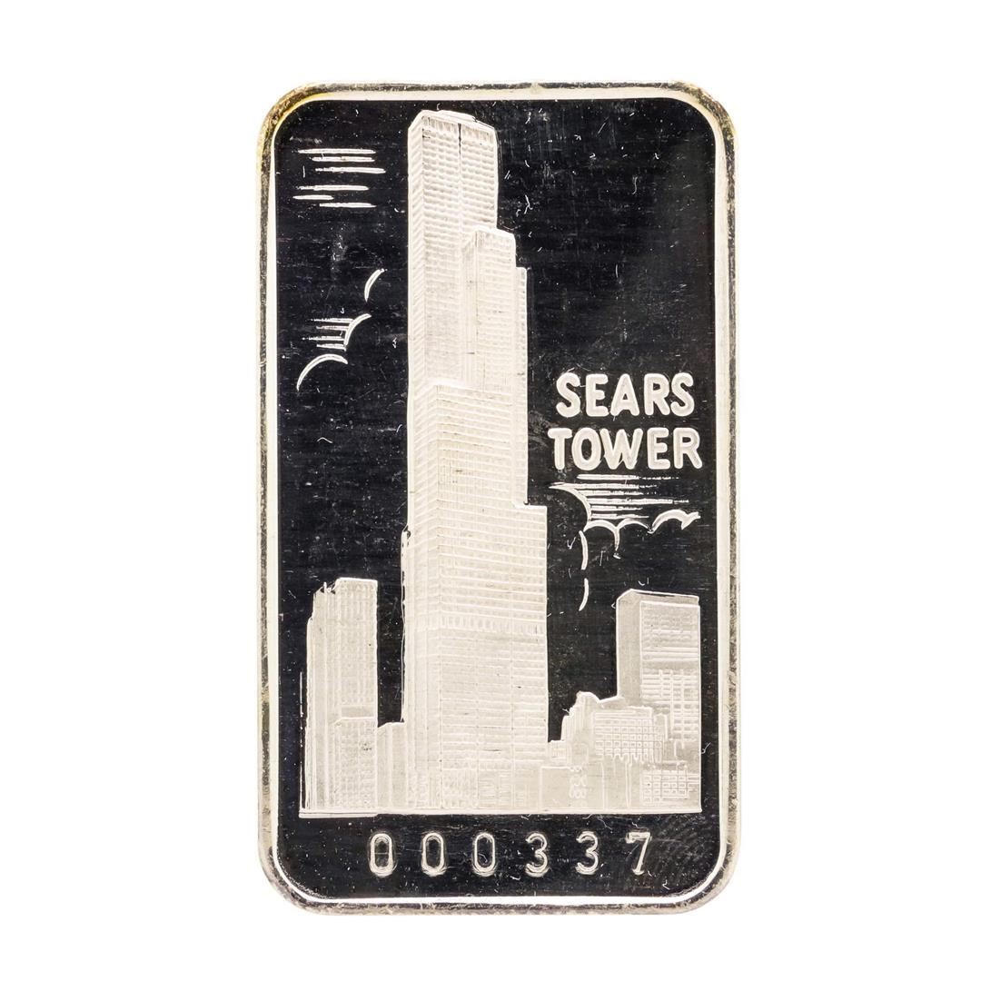 One The First National Bank of Chicago Sears Tower 1 oz .999 Fine Silver Art Bar.