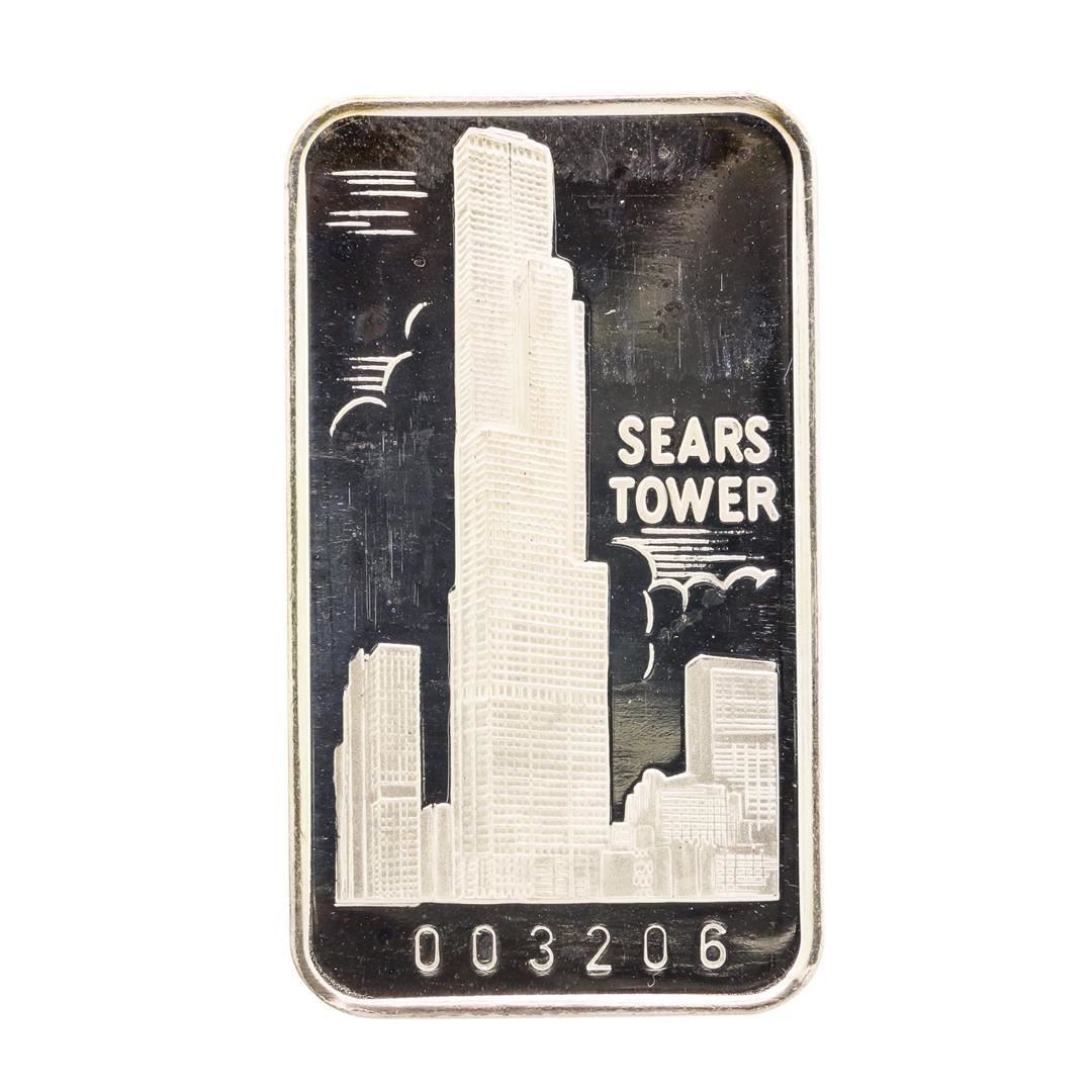 The First National Bank of Chicago Sears Tower 1 oz .999 Fine Silver Art Bar
