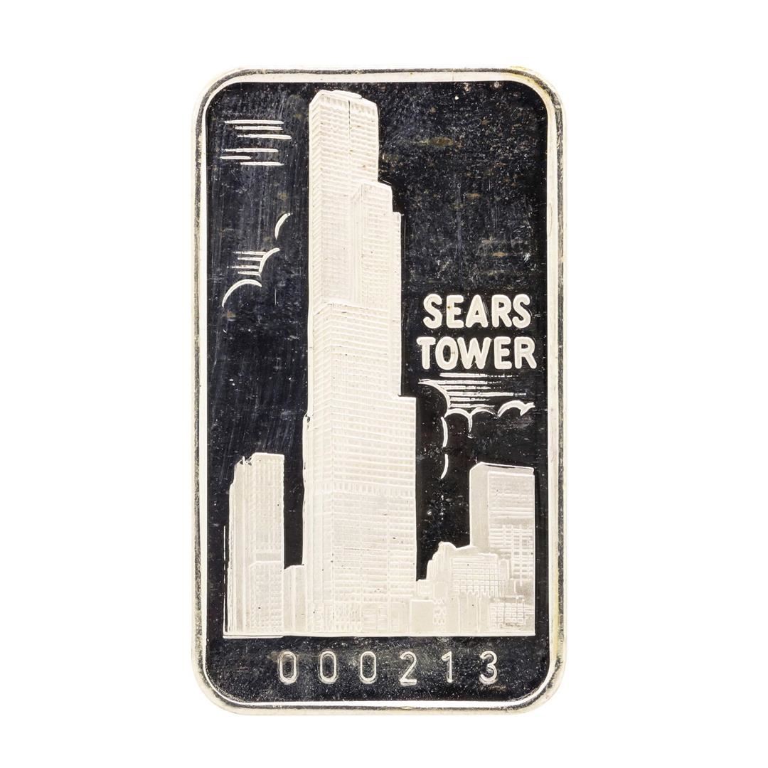 One The First National Bank of Chicago Sears Tower 1 oz .999 Fine Silver Art Bar.