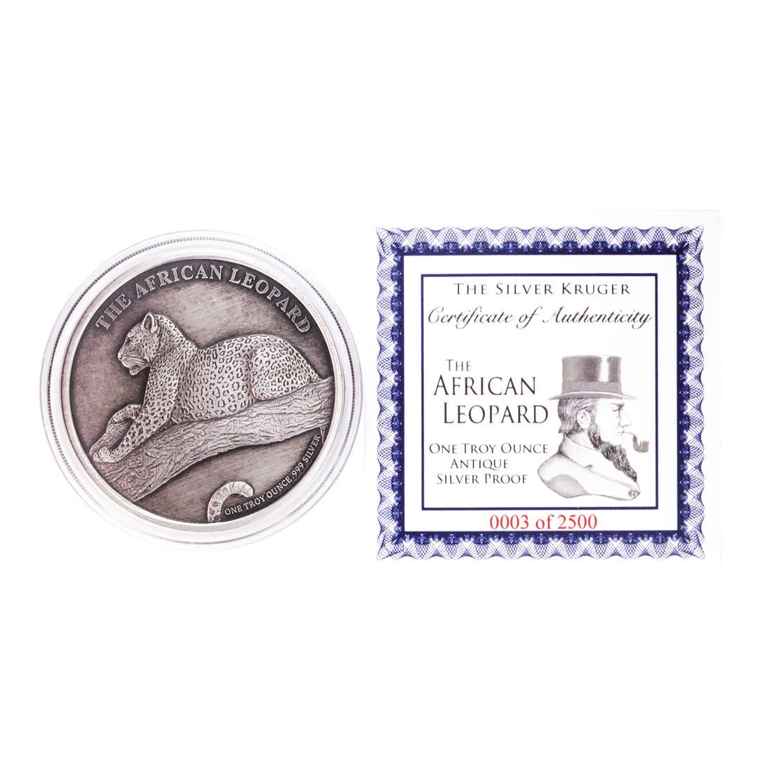 The Silver Kruger African Leopard 1 oz Antique Silver Proof Round w/COA