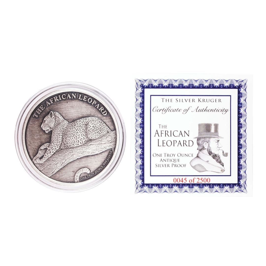 The Silver Kruger African Leopard 1 oz Antique Silver Proof Round w/COA