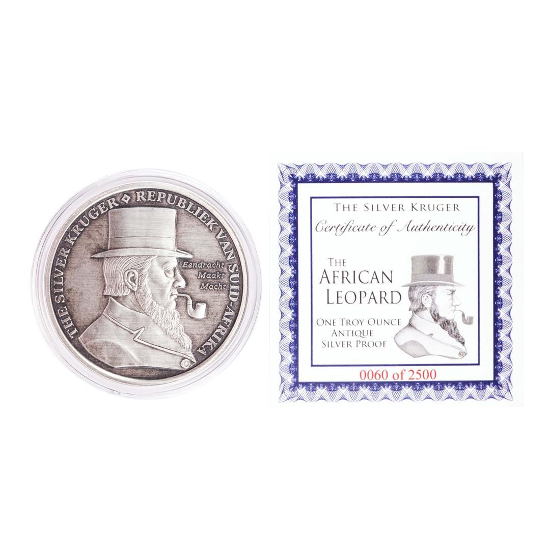 The Silver Kruger African Leopard 1 oz Antique Silver Proof Round w/COA