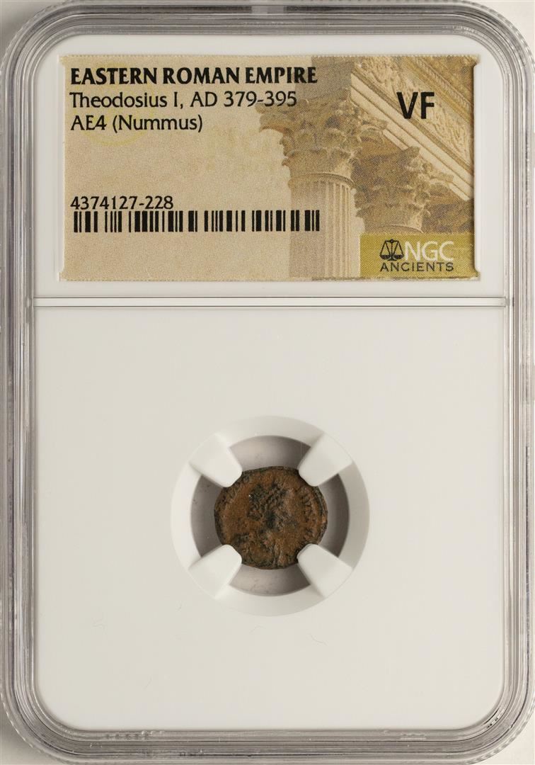 One Theodosius I, 379-395 AD Ancient Eastern Roman Empire Coin NGC VF. NGC Certified.