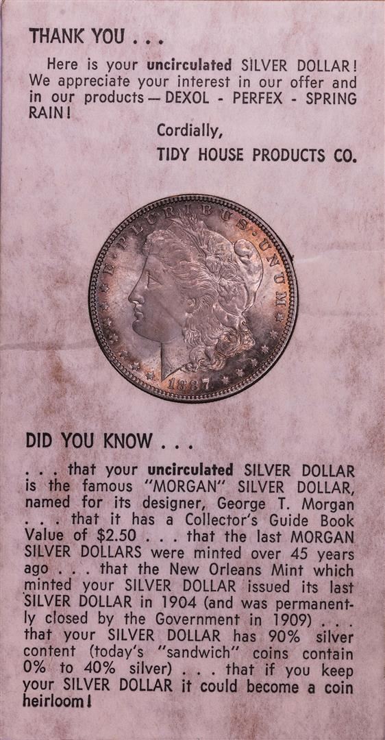 One Tidy House Holder 1887 $1 Morgan Silver Dollar Coin w/ Nice Toning.