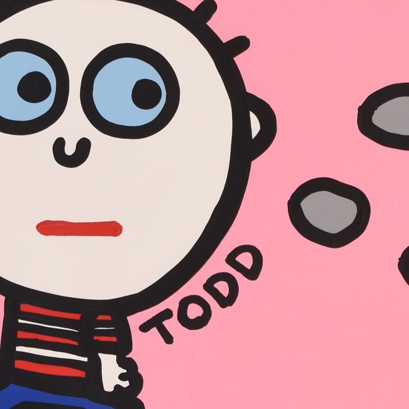 "Boys Are Stupid" is an original acrylic painting on gallery wrapped canvas by Todd Goldman, hand signed by the artist. Includes Letter of Authenticity. Measures approx. 48" x 36" (image). Due to the way this piece was stored there may be minor wear or signs of age (such as wear on the corners) but the piece is in overall good condition.