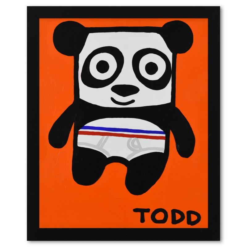 "Panda Bear" is an original acrylic painting on canvas, hand signed by Todd Goldman. This piece comes framed. Includes Letter of Authenticity. Measures approx. 18" x 22" (frame), 15.5" x 19.5" (image). There is minor wear on the frame but this piece is overall in good condition.