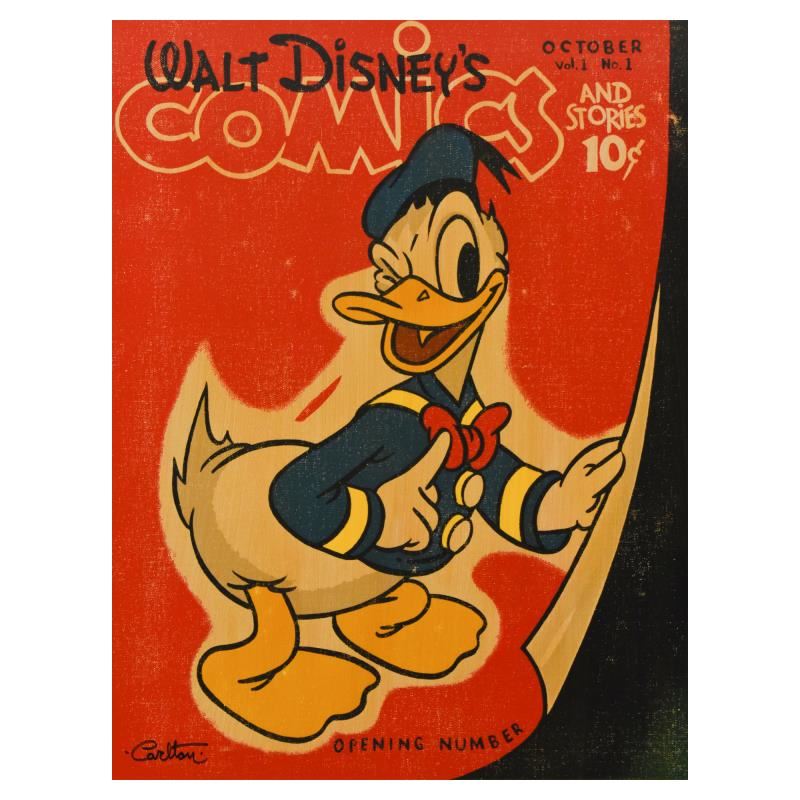 "Donald's Opening Number" is a limited edition giclee on canvas by Trevor Carlton, numbered and hand signed by the artist. This piece is licensed by Disney Fine Art. Includes Letter of Authenticity. Measures approx. 18" x 24" (image).