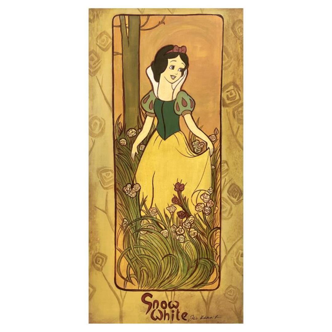"Snow White" is a limited edition Japanese giclee on canvas by Tricia Buchanan-Benson, numbered and hand signed by the artist. This piece is licensed by Disney Fine Art. Includes Letter of Authenticity. Measures approx. 12" x 24" (image).