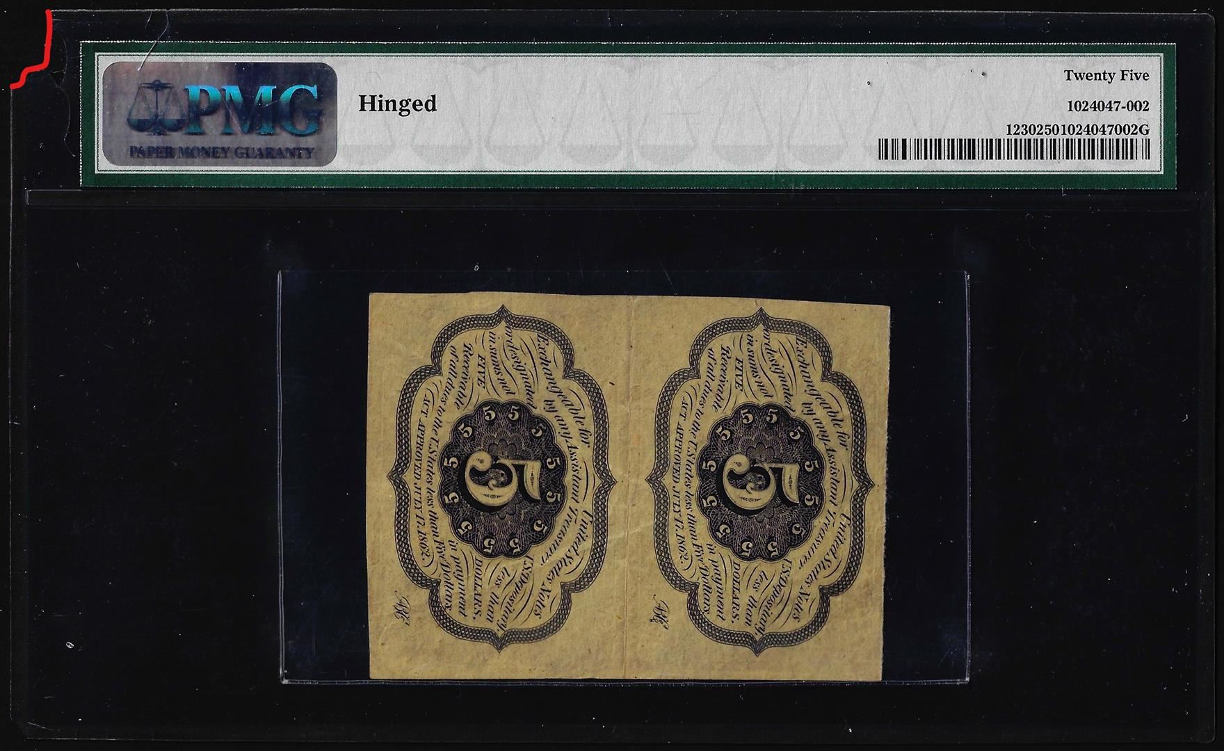 Uncut Pair of 1862 First Issue 5 Cent Fractional Currency Notes PMG Very Fine 25