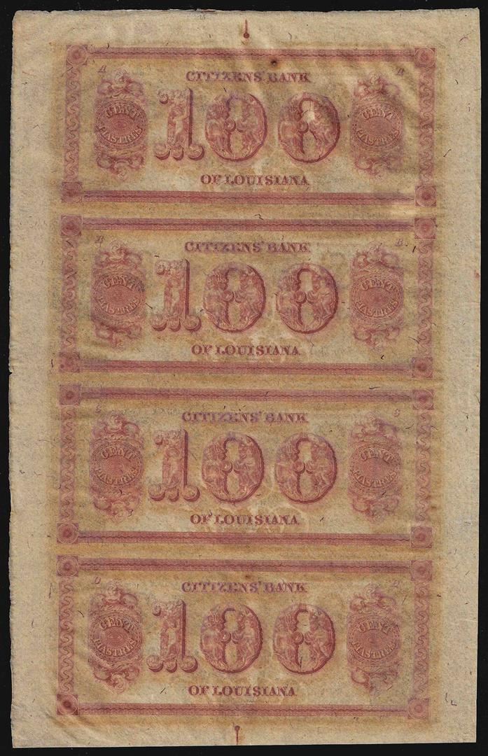 One Uncut Sheet of $100 Citizens Bank of Louisiana Obsolete Notes.