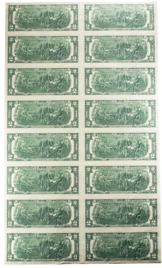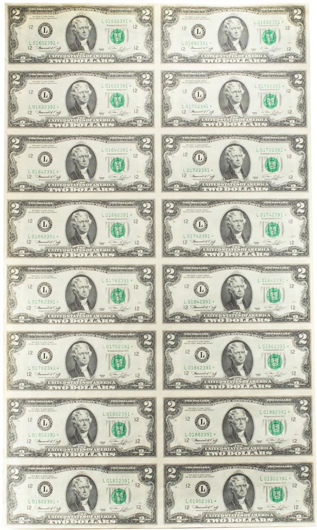 Uncut Sheet of (16) 1976 $2 Federal Reserve STAR Notes San Francisco