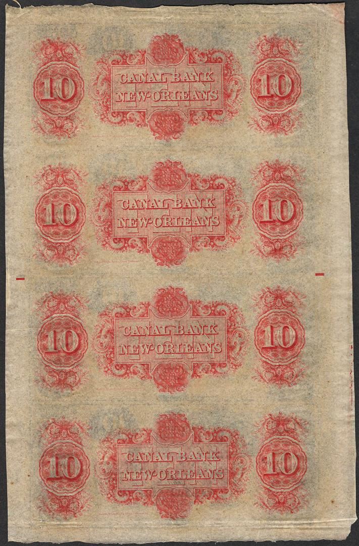 One Uncut Sheet of 1800's $10 Canal Bank Obsolete Notes.