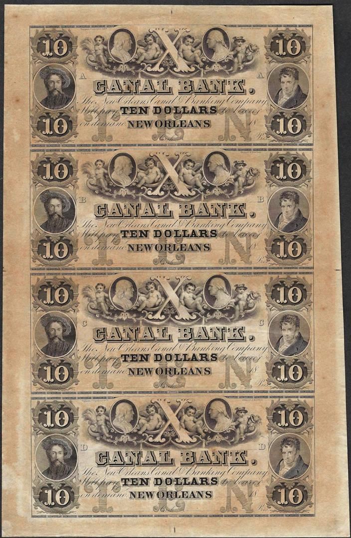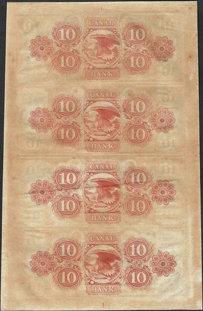 One Uncut Sheet of 1800's $10 Canal Bank Obsolete Notes.