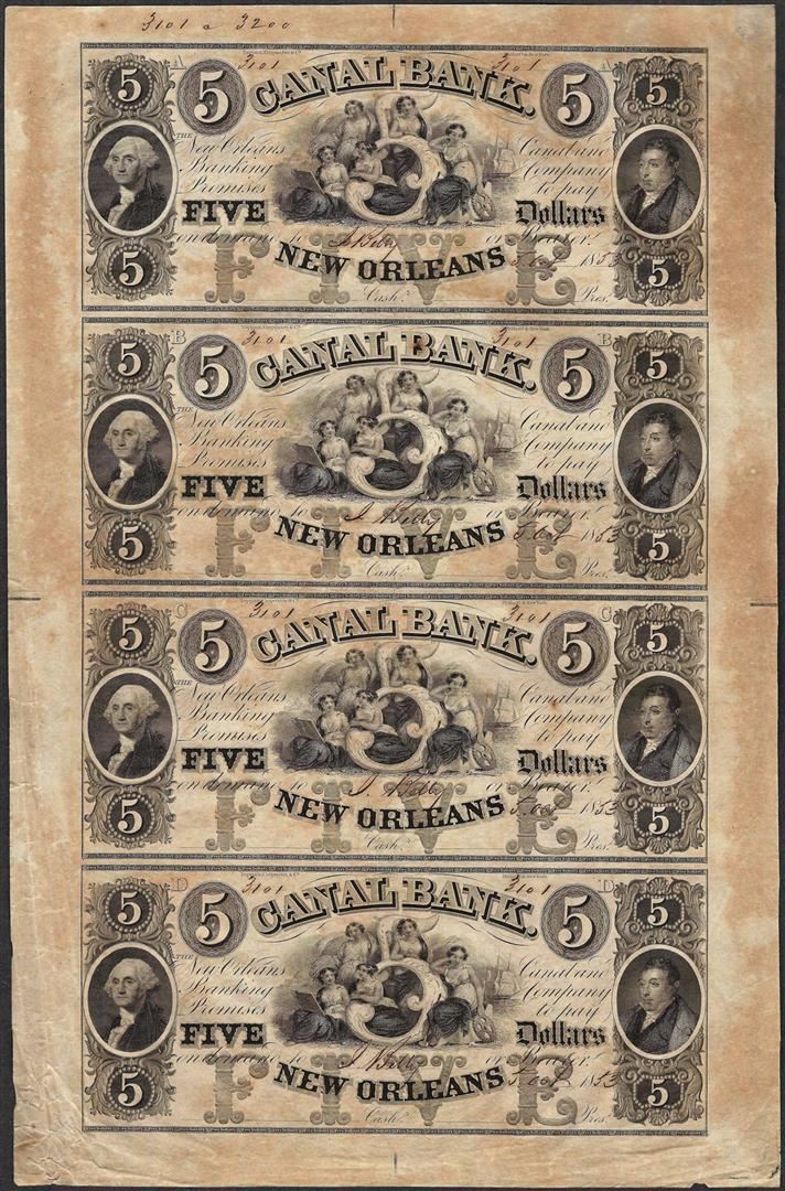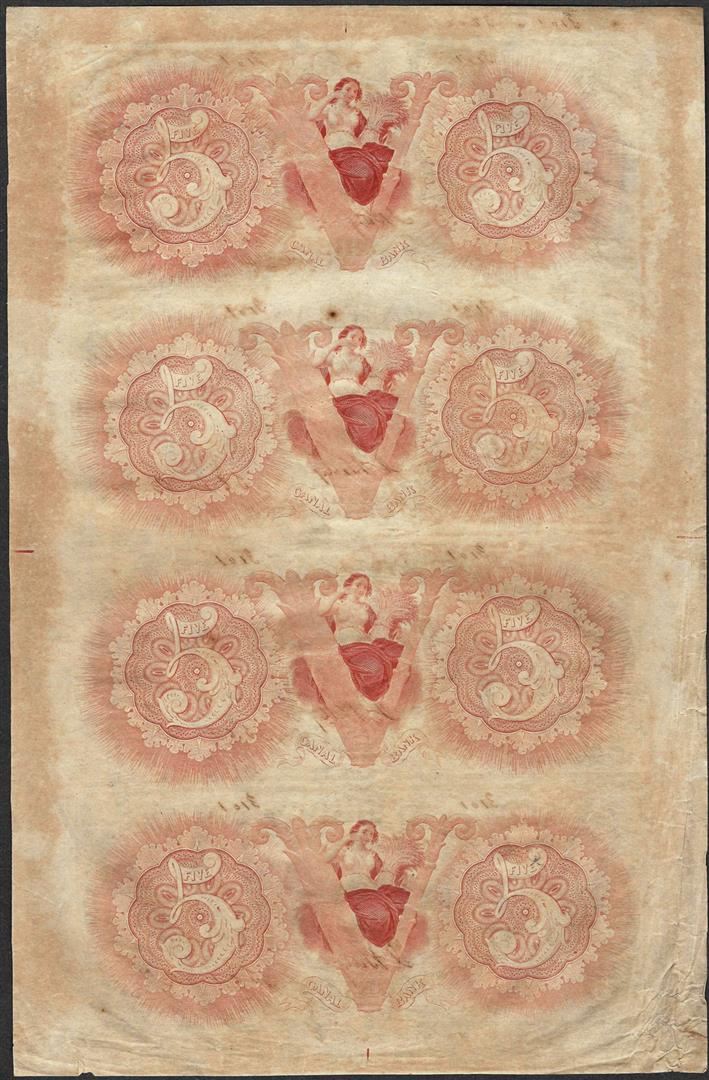 One Uncut Sheet of 1800's $5 Canal Bank Obsolete Notes.
