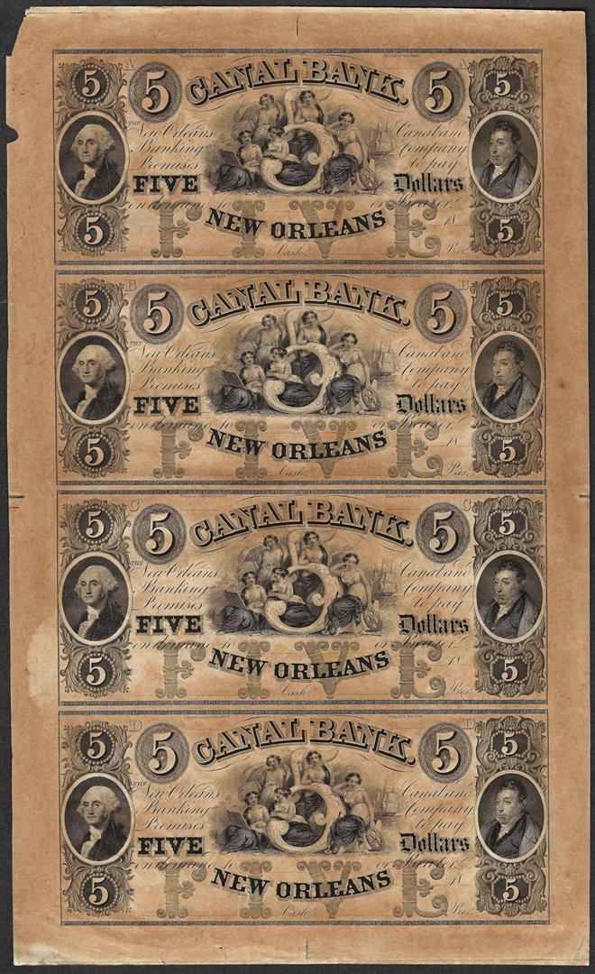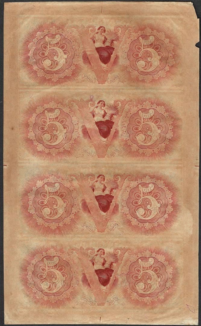 One Uncut Sheet of 1800's $5 Canal Bank Obsolete Notes.